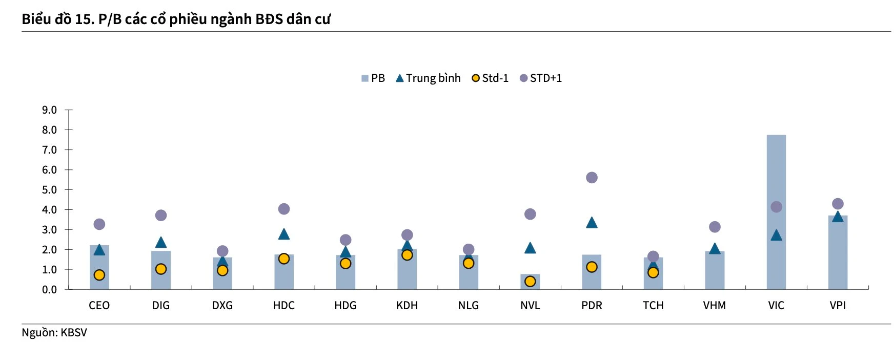 Báo cáo mới đây của Chứng khoán KB (KBSV) chỉ ra rằng, phần lớn doanh nghiệp bất động sản hiện đang giao dịch với mức P/B trung bình thấp hơn đáng kể so với bình quân 5 năm, mở ra cơ hội đầu tư với định giá hấp dẫn.