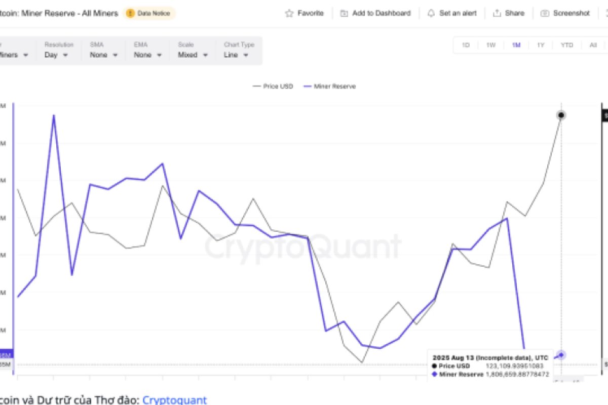 Đầu tháng này, dự trữ của thợ đào đã tăng từ 1,806,790 BTC vào ngày 02/08/2025 lên 1,808,488 BTC vào ngày 10/08/2025. Điều này làm tăng nguy cơ một làn sóng cung ứng đổ vào thị trường. Sự gia tăng này phản ánh áp lực bán từ phía thợ đào cao hơn – một động thái thường được coi là trở ngại cho các đợt tăng giá. Nhưng khi giá Bitcoin cố gắng bứt phá, dự trữ đã giảm xuống 1,806,630 BTC và kể từ đó giữ ổn định, cho thấy rằng rủi ro bán ngay lập tức đã giảm bớt. Sự rút lui của bước ngoặt này đã mở đường cho người mua đẩy thị trường lên cao hơn mà không gặp phải áp lực thanh lý lớn từ thợ đào.