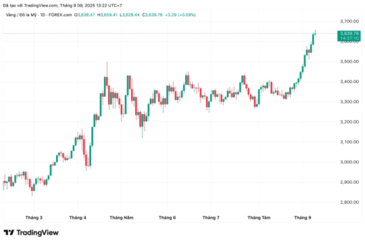 Giá vàng hôm nay (9/9): trong nước tăng nhẹ, thế giới ghi nhận mức kỷ lục 3.650 USD/ounce