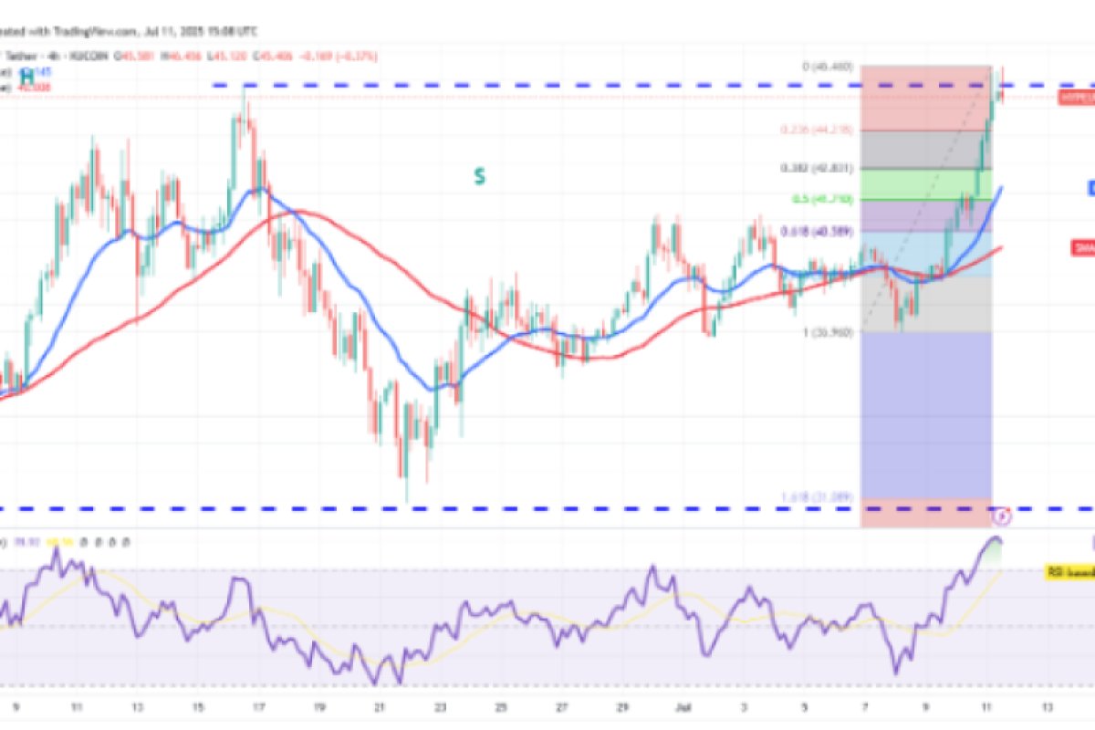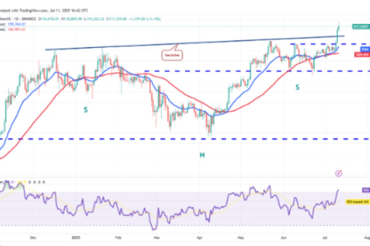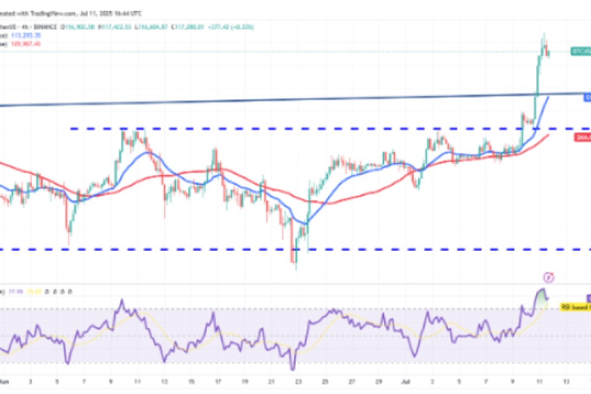 Giá đã tăng mạnh từ 110.530 đô la và vượt qua đường viền cổ. Động thái tăng này đã đẩy chỉ số sức mạnh tương đối (RSI) vào vùng quá mua trên biểu đồ bốn giờ. Điều này làm tăng khả năng điều chỉnh hoặc củng cố ngắn hạn. Nếu giá duy trì trên đường viền cổ, xu hướng tăng có thể đạt 123.000 đô la. Quan điểm lạc quan này sẽ bị phủ nhận trong thời gian tới nếu giá giảm mạnh và phá vỡ mức hỗ trợ 110.530 đô la.