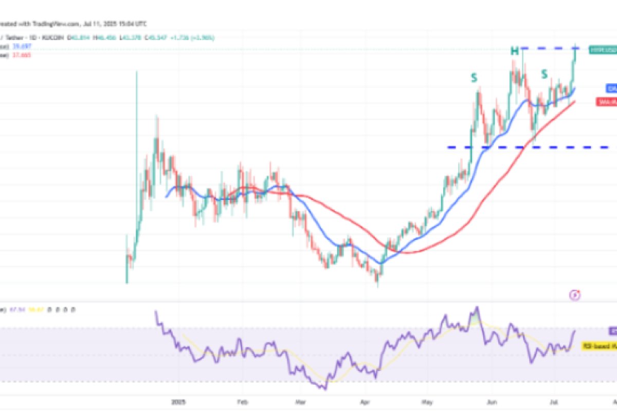 Đường EMA 20 ngày dốc lên và chỉ báo RSI gần vùng quá mua cho thấy xu hướng ít kháng cự nhất là đi lên. Nếu người mua duy trì mức giá trên 45,80 đô la, mô hình H&S sẽ bị vô hiệu. Việc thiết lập giảm giá thất bại là một dấu hiệu tăng giá, có thể đẩy giá lên 50 đô la và sau đó là 60 đô la.