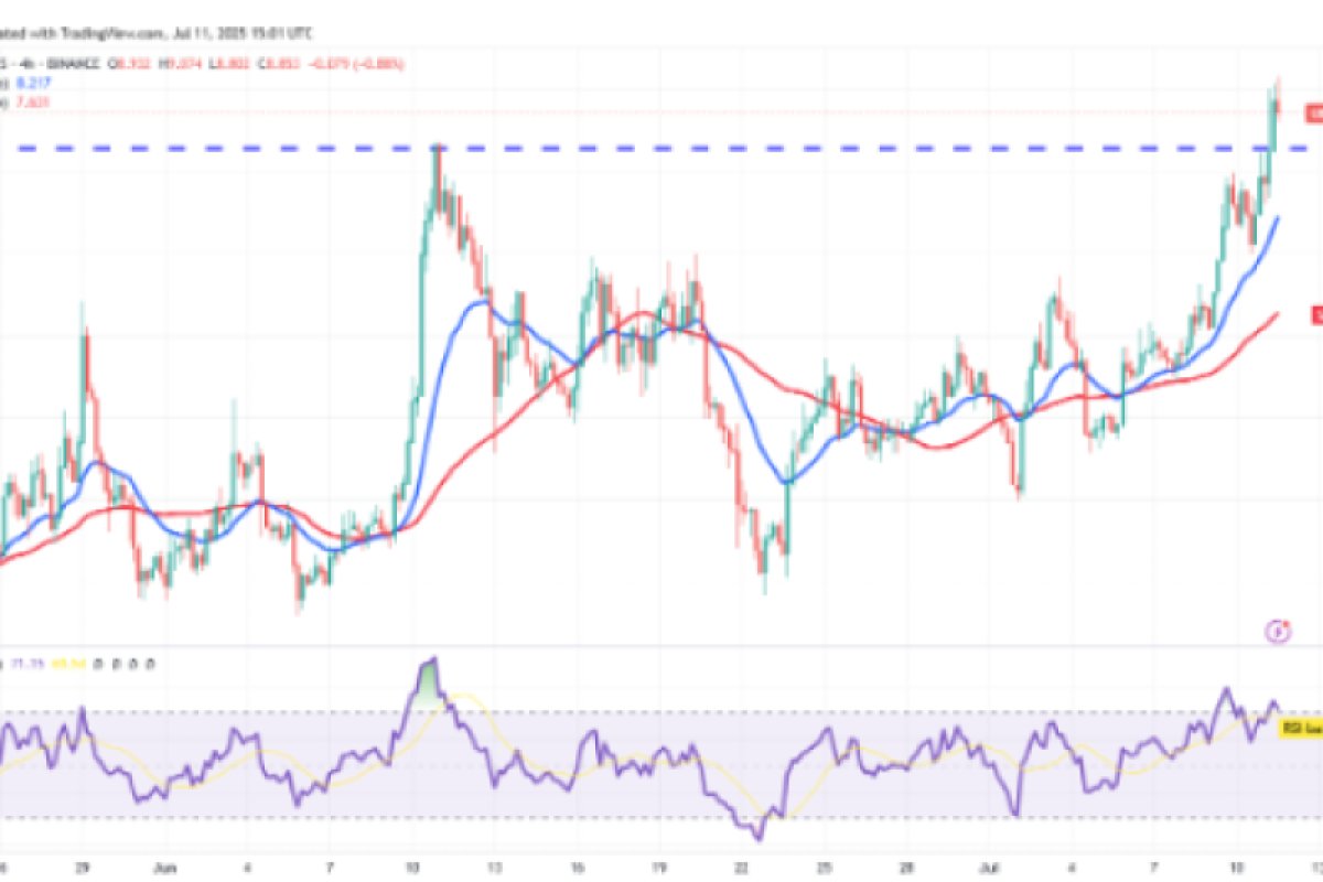Người bán có thể có những kế hoạch khác. Họ sẽ cố gắng kéo giá xuống dưới mức phá vỡ 8,64 đô la. Nếu thành công, cặp tiền này có thể trượt xuống đường EMA 20 ngày. Một cú bật mạnh từ đường EMA 20 ngày cho thấy xu hướng mua vào khi giá giảm. Phe mua sau đó sẽ lại cố gắng tiếp tục xu hướng tăng.