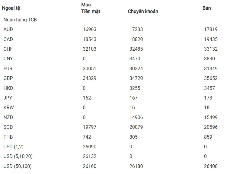 Tỷ giá ngoại tệ trong nước 8/12/2025