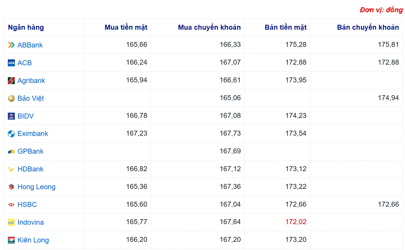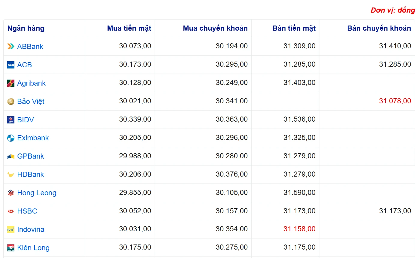 Đối với đồng NDT, Vietcombank niêm yết tỷ giá 3.670 - 3.787 VND/NDT, giảm 1 đồng ở chiều bán ra; BIDV mua vào NDT giảm 2 đồng, mức niêm yết 3.678 - 3.780 VND/NDT.