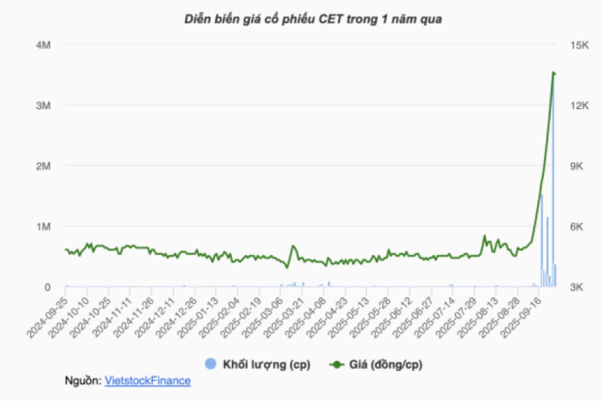 Đáng chú ý, ngay ngày 25/09, khi bắt đầu thời gian đăng ký, thị trường xuất hiện 3.1 triệu cp CET giao dịch thỏa thuận, giá trị hơn 35 tỷ đồng, bình quân 11,200 đồng/cp, thấp hơn 21% so với giá trần 13,600 đồng/cp. Lượng giao dịch này tương đương gần 52% vốn điều lệ, mở ra khả năng nhóm lãnh đạo đã hoàn tất thoái vốn trong thương vụ sang tay này, dù chưa có thông báo chính thức từ Công ty.