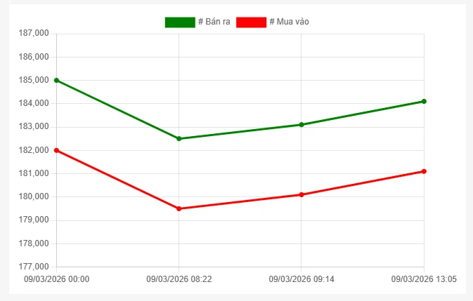 Chiều 9/3, tiếp tục đà phục hồi, giá vàng tăng thêm khoảng 1 triệu đồng/lượng. Hiện giá vàng SJC, giá vàng trơn phổ biến ở mức 181,1 – 184,1 triệu đồng/lượng.