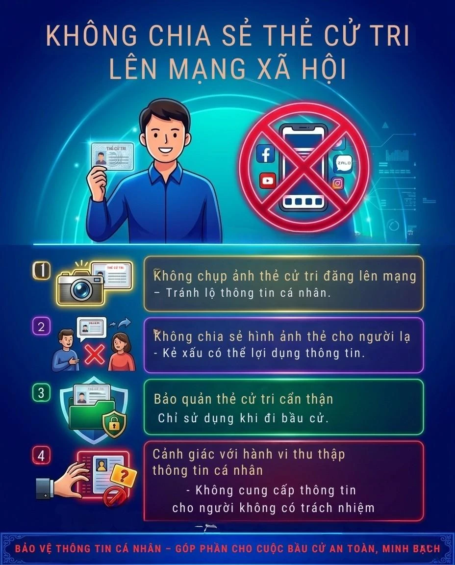 1. Không đăng tải công khai hình ảnh thẻ cử tri hoặc các giấy tờ có chứa thông tin cá nhân lên mạng xã hội.