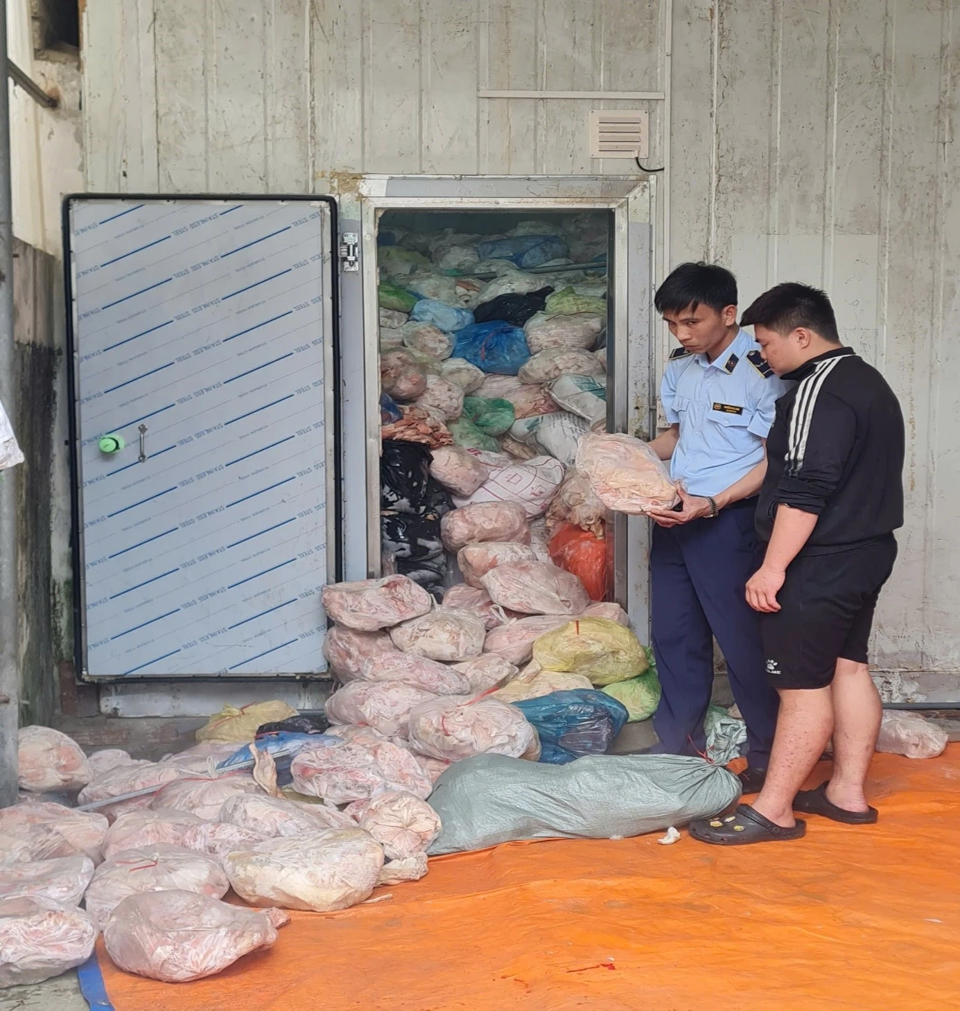 Tại đây, lực lượng chức năng phát hiện hơn 1 tấn hàng hóa là thực phẩm đông lạnh, gồm: Tràng trứng gia cầm, nầm lợn, ruốc lợn, bò khô, thịt lợn, chả cá, chả mực, mực, bạch tuộc, bào ngư và nhiều loại mặt hàng thực phẩm đông lạnh khác không có tem, nhãn, nguồn gốc xuất xứ, tiềm ẩn nguy cơ mất an toàn thực phẩm, gây ảnh hưởng đến sức khỏe người tiêu dùng.