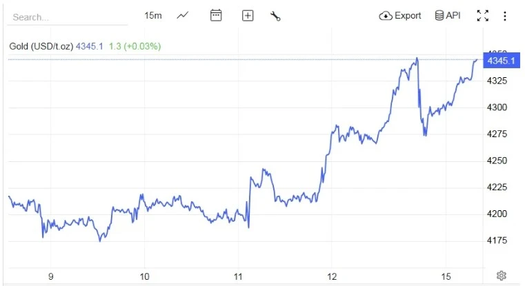 Trên thị trường quốc tế, giá vàng tiếp tục nối dài đà tăng khi kim loại quý này tăng thêm 19 USD/ounce, lên mức 4.319 USD/ounce. Động lực chính đến từ kỳ vọng lạm phát hạ nhiệt và dấu hiệu suy yếu của nền kinh tế Mỹ, qua đó làm gia tăng khả năng Cục Dự trữ Liên bang Mỹ sẽ phải cắt giảm lãi suất mạnh tay trong năm 2026.