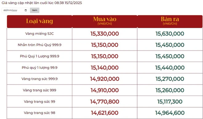 Giá vàng hôm nay 15/12: Vàng trong nước lập đỉnh mới