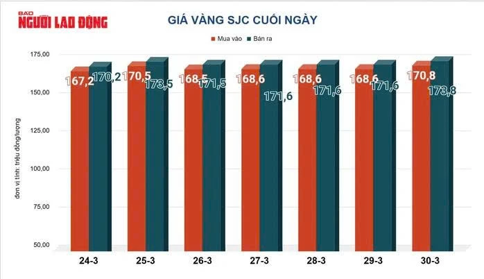 Giá vàng hôm nay 30/3: Quay đầu giảm nhẹ