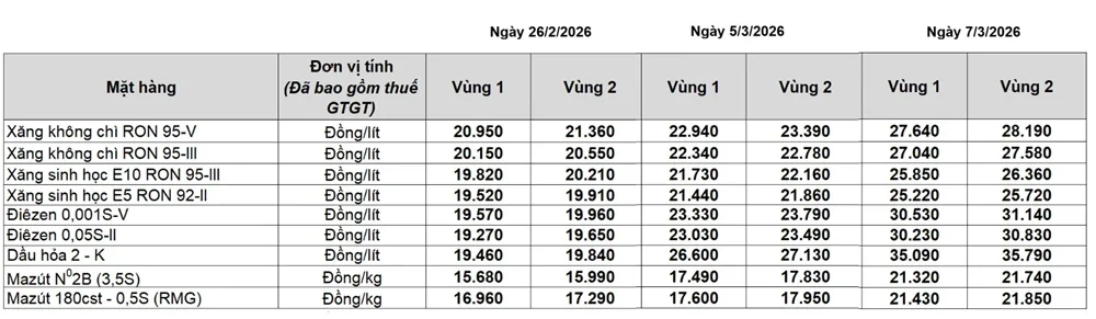 Trong 2 ngày gần nhau (5/3 và 7/3), giá xăng dầu được điều chỉnh tăng mạnh. Petrolimex đã điều chỉnh giá xăng dầu tăng mạnh từ vùng 20.000 – 21.000 đồng/lít lên 27.000 - 28.000 đồng/lít tùy loại và khu vực.