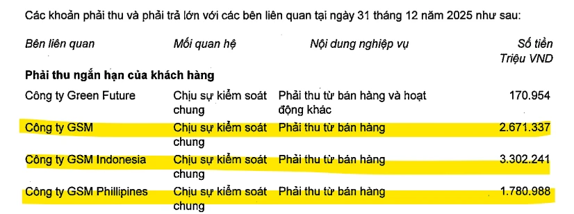 Tuy nhiên, tăng trưởng hiện tại của GSM vẫn thiên về mở rộng quy mô hơn là tạo dòng tiền. Toàn bộ doanh thu từ GSM Indonesia và GSM Philippines hiện vẫn được ghi nhận dưới dạng công nợ. Tính đến cuối năm 2025, Vingroup ghi nhận khoản “phải thu ngắn hạn của khách hàng” đối với nhóm GSM lên tới 7.754 tỷ đồng. Trong đó, khoản phải thu tại Indonesia là 3.302 tỷ đồng, còn tại Philippines ở mức 1.780 tỷ đồng. Điều này cho thấy GSM đang chấp nhận hy sinh dòng tiền ngắn hạn để ưu tiên mở rộng và xây dựng thị phần.