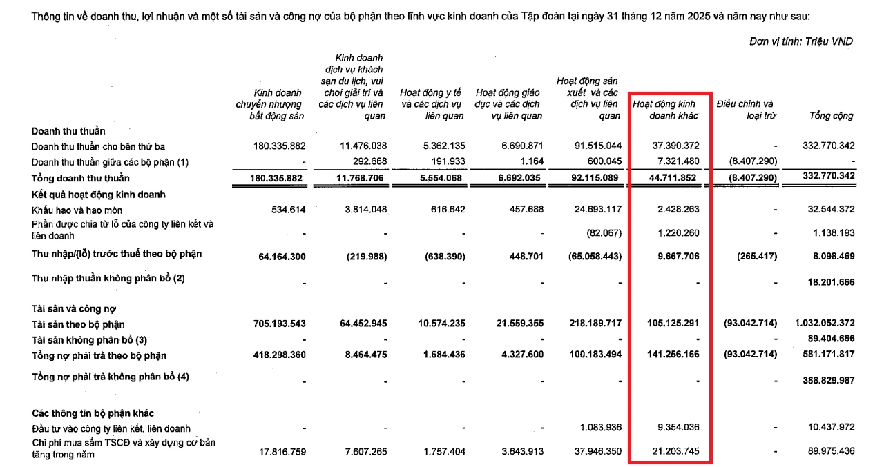 Theo báo cáo tài chính hợp nhất quý IV/2025 của Vingroup, doanh thu thuần cả năm đạt 332.770 tỷ đồng, tăng 76% so với năm trước – mức cao nhất từ trước đến nay. Trong tổng thể đó, nhóm GSM đóng góp hơn 19.923 tỷ đồng doanh thu. Thị trường trong nước vẫn chiếm tỷ trọng lớn với gần 14.900 tỷ đồng, song các thị trường quốc tế bắt đầu để lại dấu ấn rõ nét.