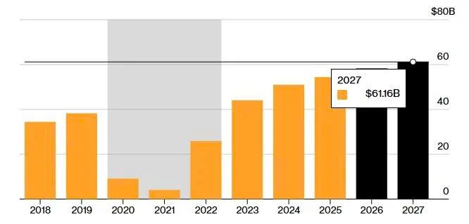 Kể từ đầu năm 2023, Royal Caribbean và Carnival Corp. đều đã tăng hơn gấp đôi giá trị thị trường. Tuy nhiên, giá dầu tăng – do cuộc chiến Mỹ–Israel và Iran – đã gây áp lực lên cổ phiếu trong những tuần gần đây. Norwegian Cruise Line Holdings Ltd., công ty vừa bổ nhiệm CEO mới vào tháng trước, có giá trị tăng chậm hơn nhưng vẫn tăng khoảng 70% trong cùng kỳ. Theo Hiệp hội Du thuyền Quốc tế (CLIA), hơn 40 triệu hành khách được dự báo sẽ đi du thuyền vào năm 2027, tăng từ mức 29,7 triệu năm 2019.