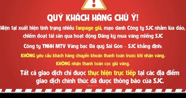 Theo SJC, các đối tượng thường quảng cáo, mời gọi người dân đăng ký mua vàng miếng thông qua các fanpage giả. Doanh nghiệp khẳng định không yêu cầu khách hàng chuyển khoản trước khi nhận vàng, không nhận đặt cọc giữ vàng; mọi giao dịch chỉ thực hiện trực tiếp tại các điểm chính thức.