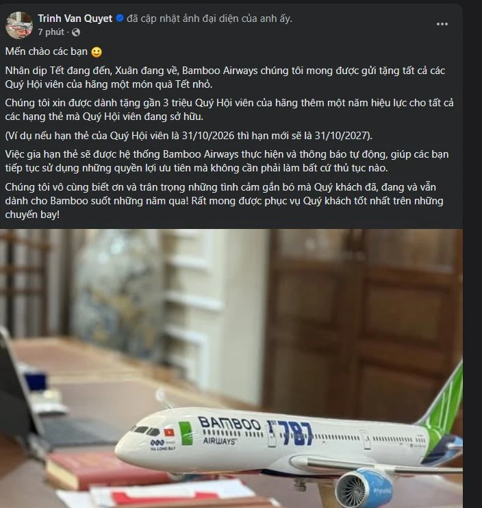 Thông tin này được ông Quyết chia sẻ như một lời tri ân nhân dịp Tết nguyên đán, đánh dấu sự tương tác trở lại của cựu Chủ tịch FLC - Bamboo Airways, với cộng đồng sau thời gian dài vắng bóng.