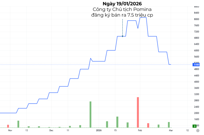 Tuy nhiên, ngay sau khi chạm đỉnh, thị giá POM lập tức quay đầu giảm mạnh. Đến nay, cổ phiếu này đã giảm sàn 3 phiên liên tiếp và mất hơn 40% so với mức đỉnh ghi nhận vào ngày 02/02.
