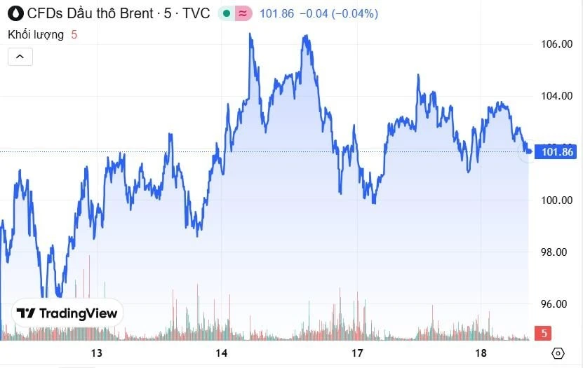 Sang ngày 18/3, giá dầu quay đầu giảm nhẹ khi xuất hiện tín hiệu tích cực từ nguồn cung. Dầu Brent giảm 0,65% xuống 102,75 USD/thùng, còn WTI giảm 1,23% xuống 95,03 USD/thùng. Trước đó, Brent cũng có lúc giảm về 102,28 USD/thùng. Nguyên nhân chính đến từ thỏa thuận giữa Iraq và khu vực Kurdistan về việc nối lại xuất khẩu dầu qua cảng Ceyhan, dự kiến đạt ít nhất 100.000 thùng/ngày.