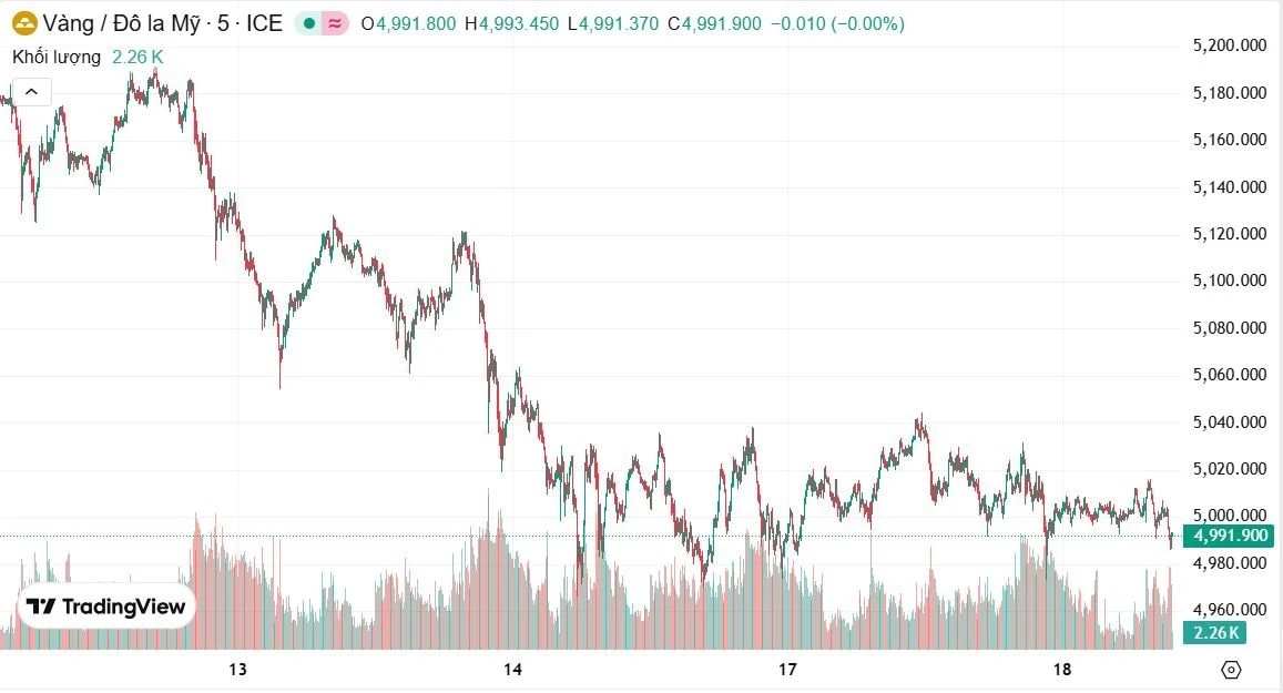 Giá vàng tiếp tục được hỗ trợ bởi nhu cầu trú ẩn an toàn trong bối cảnh địa chính trị bất ổn. Trong phiên 17/3, vàng giao ngay nhích 0,2% lên 5.012,80 USD/ounce, trong khi hợp đồng vàng tương lai tháng 4 tăng 0,3% lên 5.016,80 USD. Tuy nhiên sang phiên 18/3, giá vàng lại giảm nhẹ, xuống dưới mốc 5000 USD/ounce.