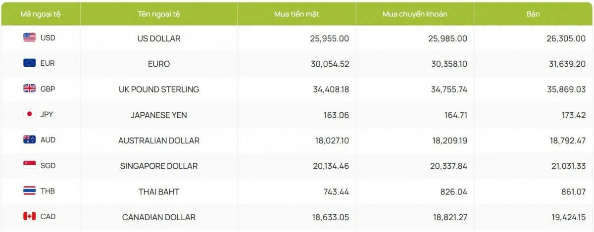 ACB bắt đầu ngày giao dịch với mức 25.980 đồng/USD mua vào và 26.305 đồng/USD bán ra, giữ nguyên so với phiên liền trước.