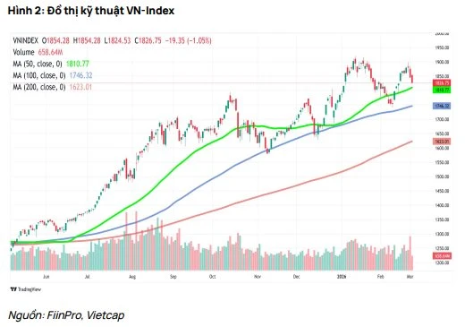 Theo báo cáo triển vọng thị trường tháng 3/2026 của Chứng khoán Vietcap, thị trường chứng khoán Việt Nam đang chịu tác động đan xen giữa các yếu tố hỗ trợ và rủi ro trong ngắn hạn.