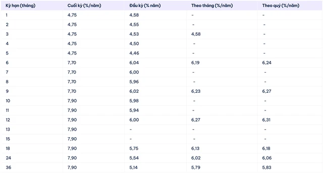 Theo biểu lãi suất mới nhất áp dụng từ 17h ngày 20/3, Cake hiện niêm yết lãi suất cao nhất đến 7,9% đối với kỳ hạn trên 10 tháng; 7,7% đối với kỳ hạn trên 6 tháng; và 4,75% với kỳ hạn dưới 6 tháng.